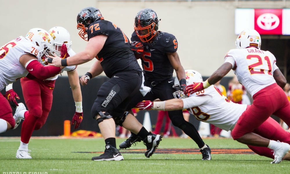 Justice Hill didn’t make up as much ground this week. It didn’t help that when he touched the ball he was already surrounded by Cyclone defenders....