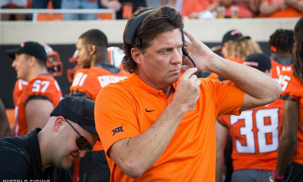 Mike Gundy was recognized after his team's big win over Boise State.