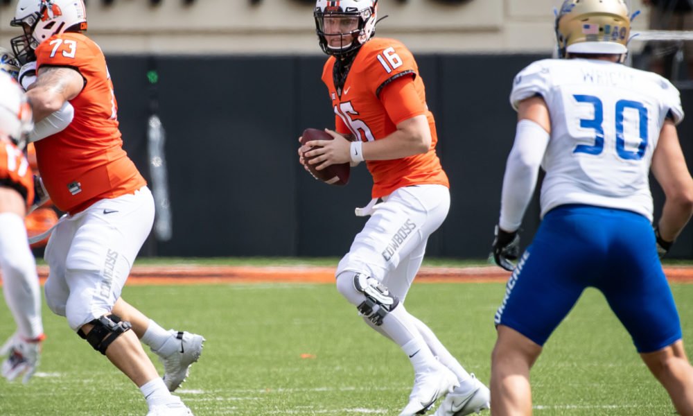 Oklahoma State survives to win its Big 12 opener.
