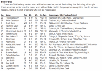 OSU released a list Monday of 20 Cowboys on Monday who intend to walk on Senior Day. The list includes Sam Jackson, Aden Kelley, Parker Robertson, Cam Smith and others.