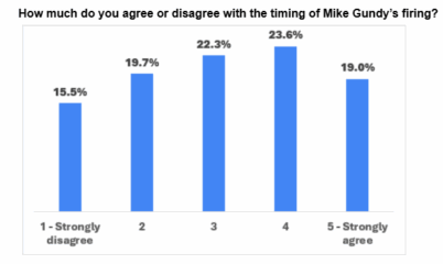 Of the polled, 51.3% strongly agreed with the decision to move on from Gundy with another 29.7% selecting the “agree” category. That means 81% of those polled agreed to some extent that it was time to move on, while only 7.7% were in the “strongly disagree” or “disagree” camps.